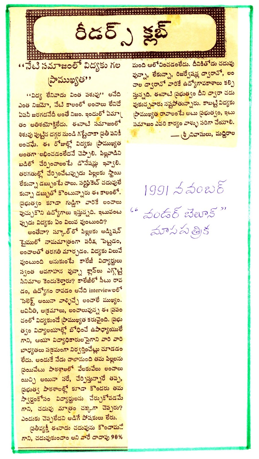 - బాలవికాసం( మా పాఠశాల పిల్లల త్రైమాస పత్రిక)